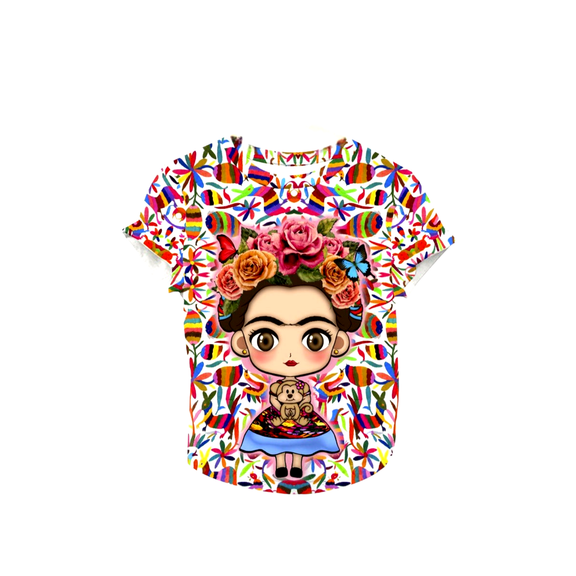 Frida Kahlo Cartoon Full Print Graphic Tee Otomi Mexican T-Shirt