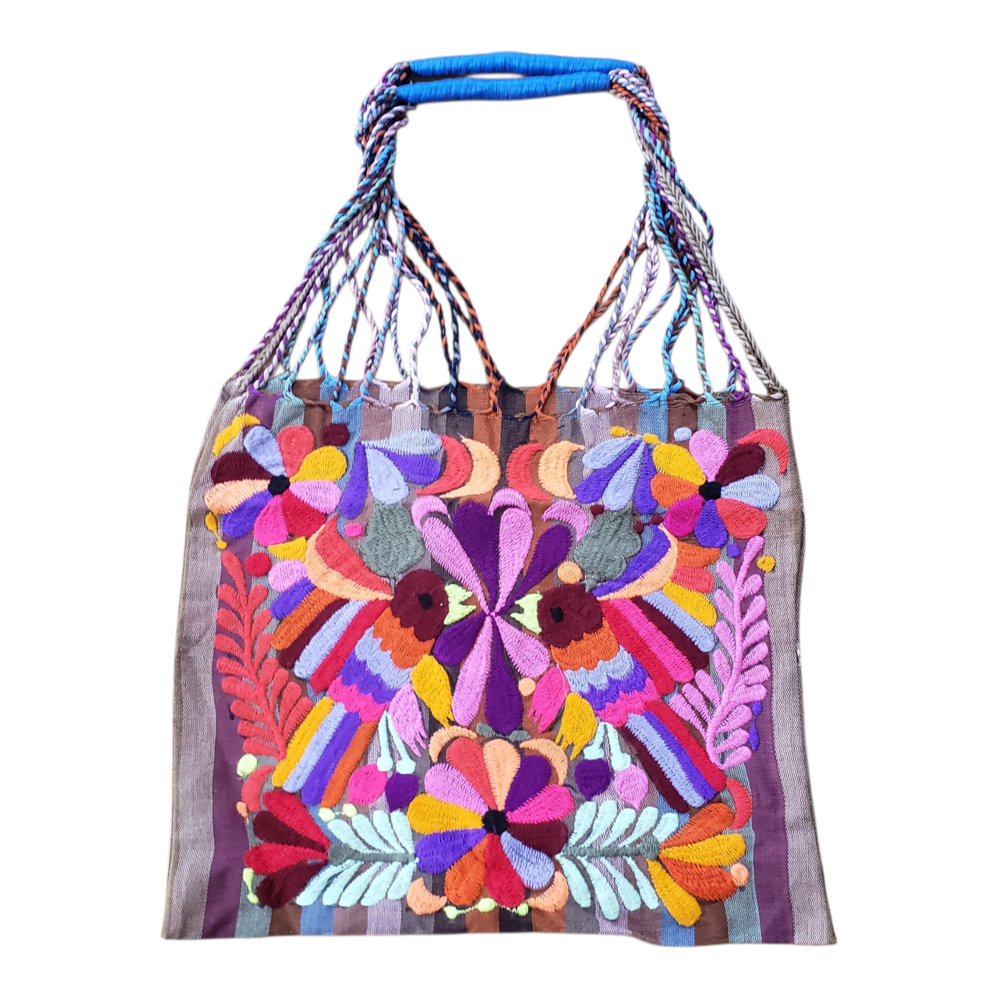 Embroidered Mexican Striped Hammock Bag Woven Tote Chiapas Women's Handmade