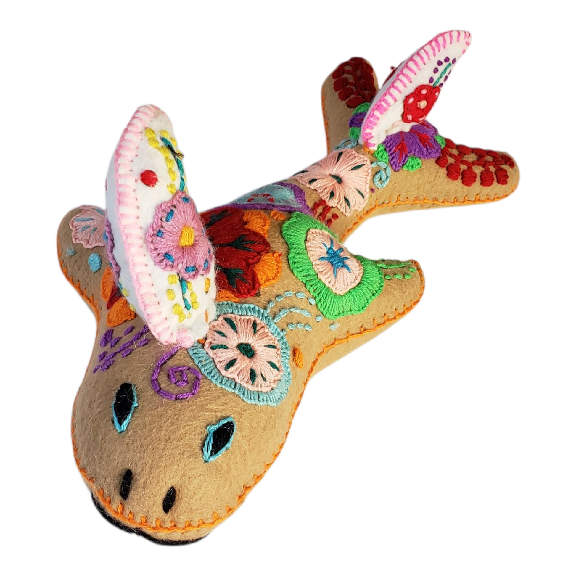 The Shark Animalito is an embroidered felt, embroidered animal from Chiapas, Mexico.